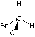 Bsp.: Im Fall von Bromchlorfluormethan ist dies mit den Liganden Br, Cl, F und H gegeben. Ganz anders bei Bromchlormethan: da sind es nur drei verschiedene Liganden, Br, Cl und (zweimal) H. Ein Atom mit vier verschiedenen Liganden bezeichnet man demnach als Chiralitätszentrum (nach Prelog, 1956), stereogenes Atom (nach Mislow), Stereozentrum oder "asymmetrisches Atom" (nach van't Hoff, 1874). Es wird oft durch einen Stern (*) gekennzeichnet. Demnach müssten wir folgern: